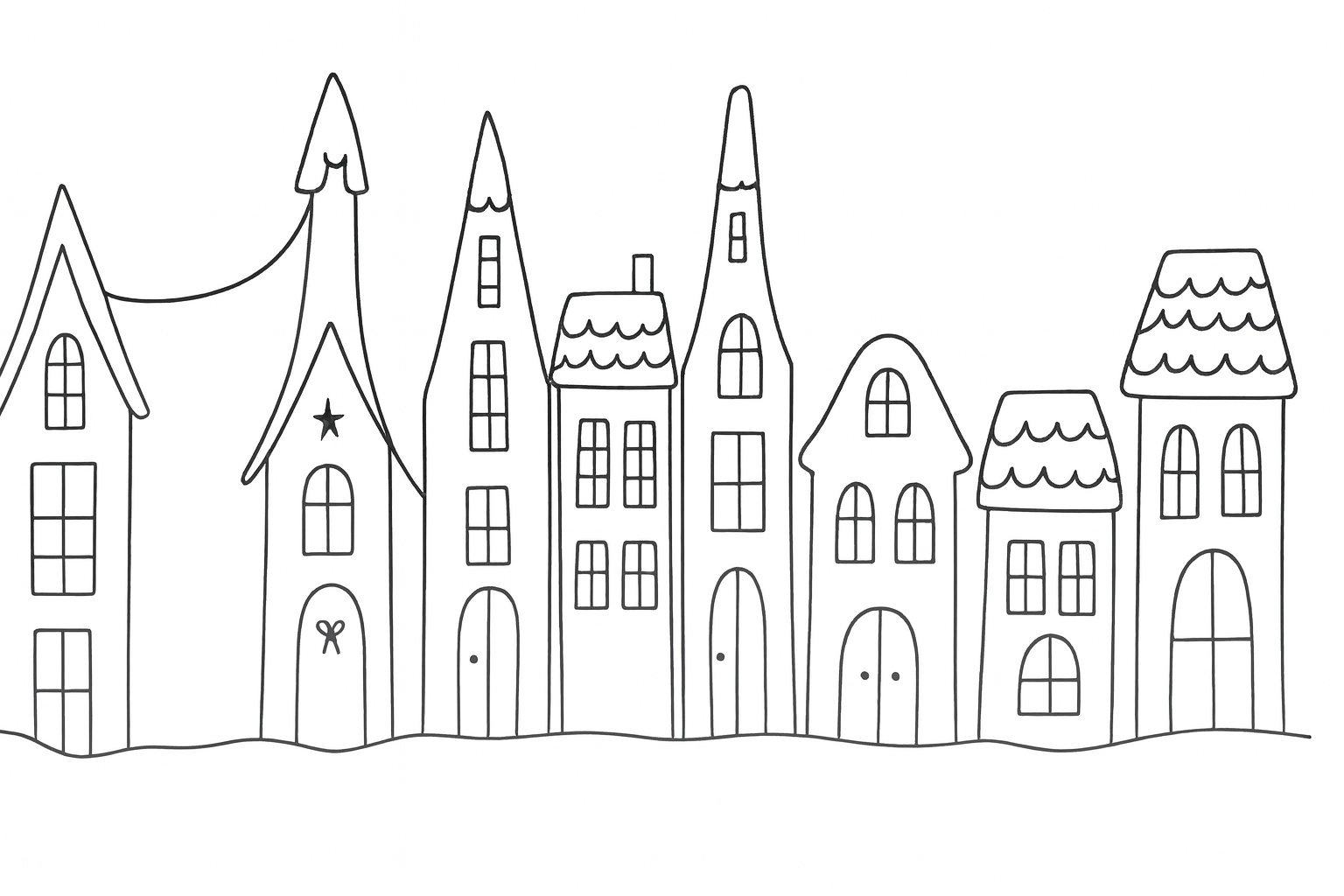 Tip! Brug flere skabeloner side om side, så landsbyen kan fortsætte langs hele vinduet. Tilføj eventuelt små snemænd, træer eller stjerner for at skabe endnu mere julestemning.